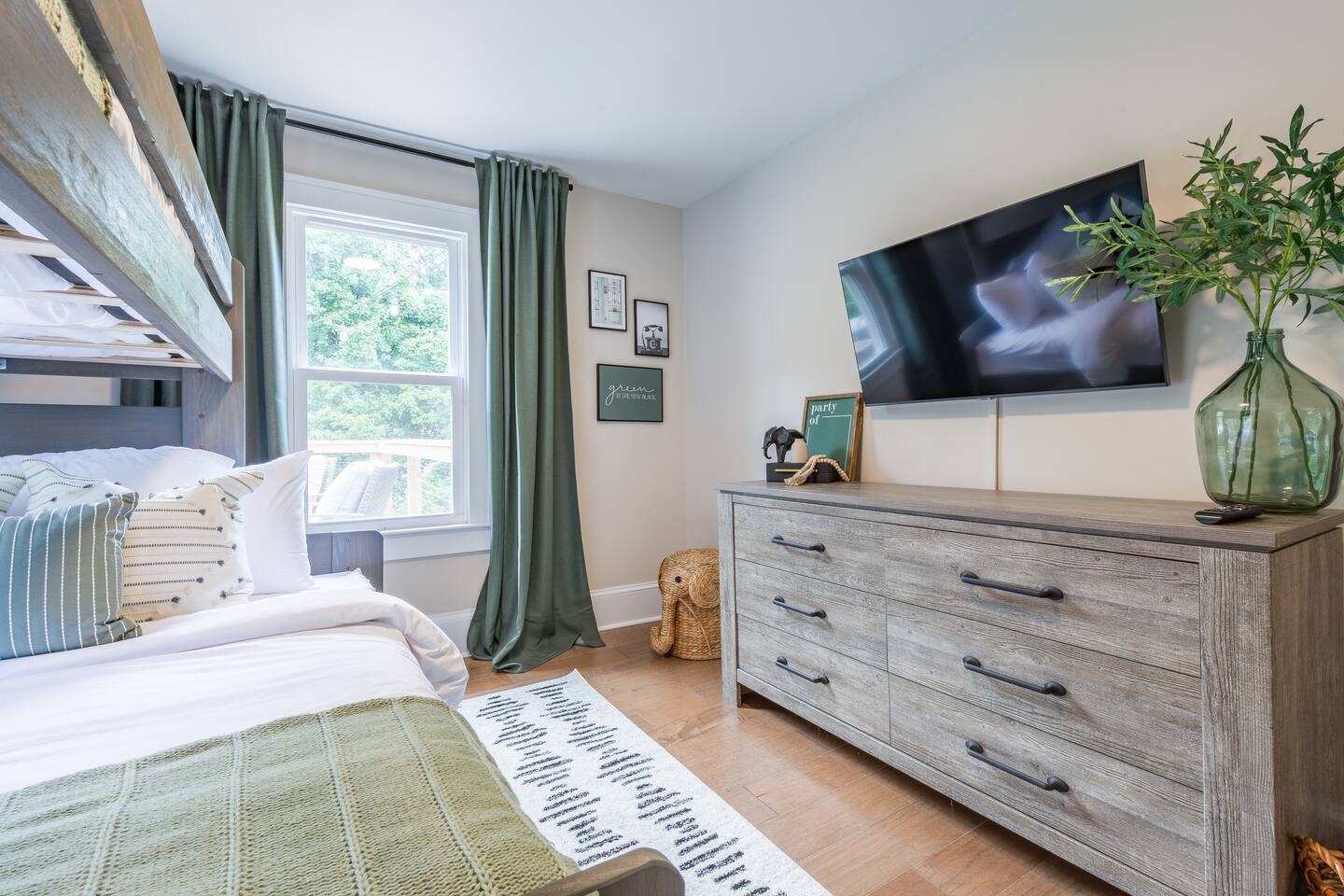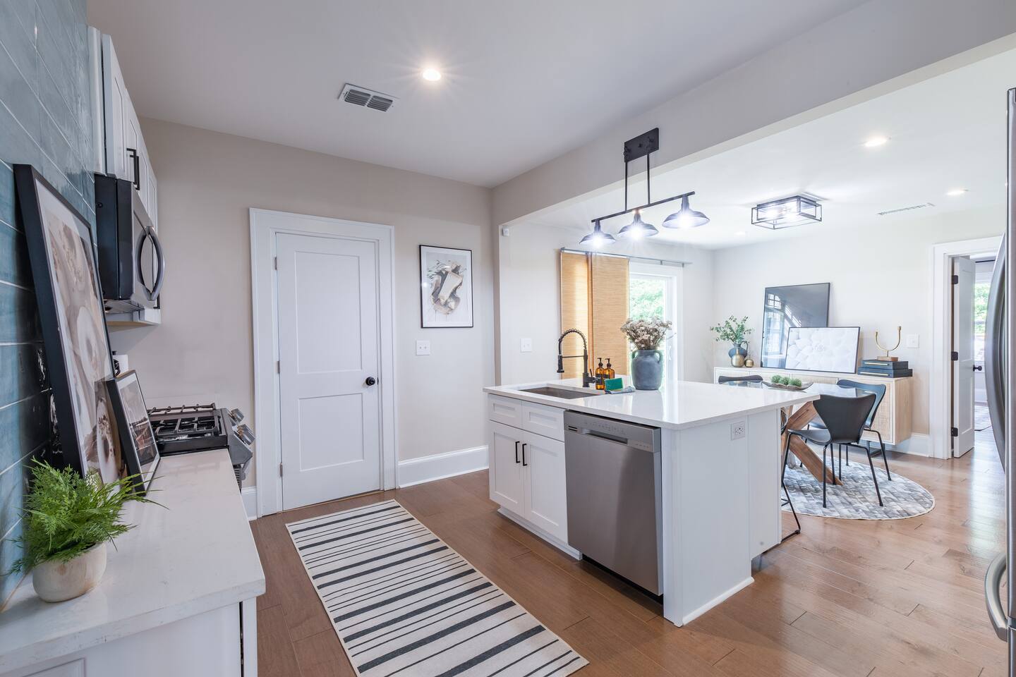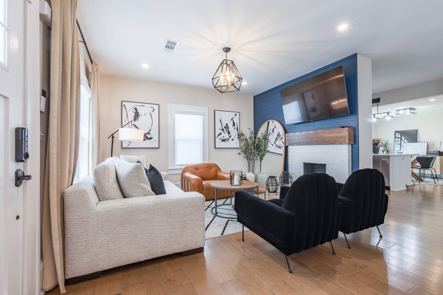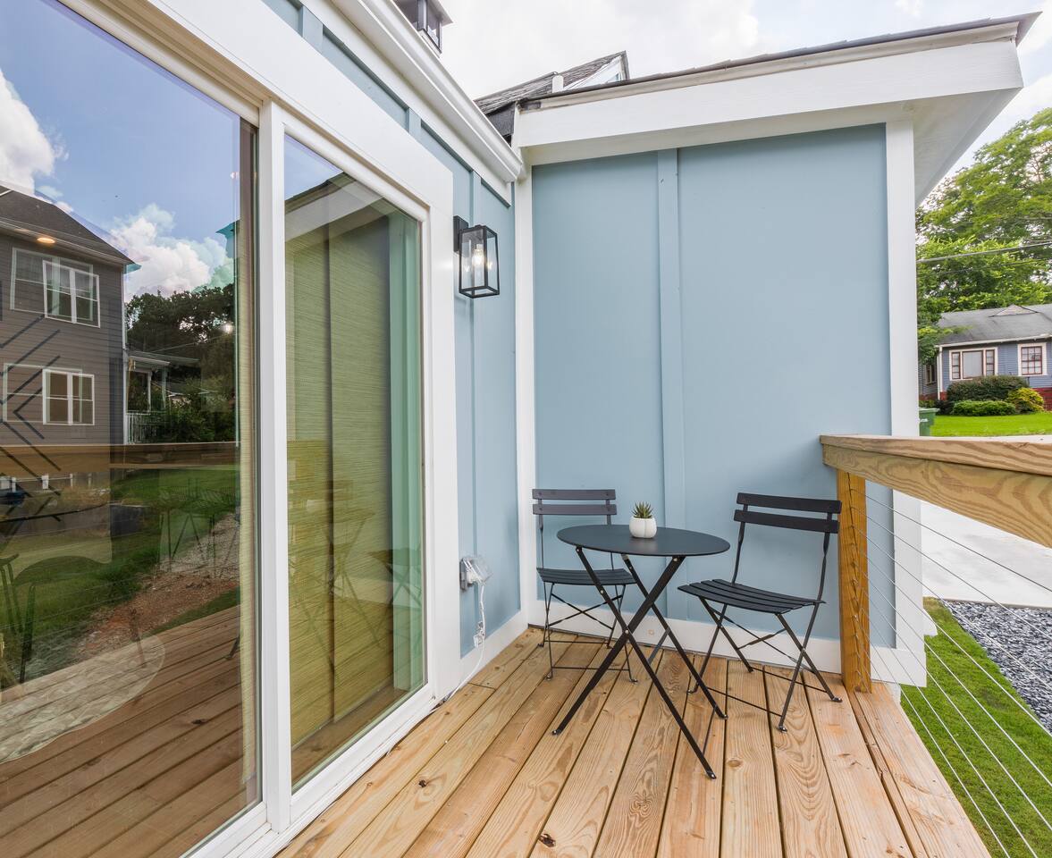 As you step into this beautifully designed 1,900 sq ft main floor unit, you're greeted by an open-concept layout blending modern style and comfort in the heart of historic Kirkwood. Just minutes from Downtown ATL, trendy restaurants, and shops, it’s the perfect retreat for families and groups. This is a two-unit home. Guests in the basement unit will not access your space. If you prefer exclusive access to the entire property (main floor + basement), book here: airbnb.com/h/bluehavenatl. Units are fully separated with locked interior stairs and private exterior entrances. • Fully Equipped Kitchen & Dining Cook meals with ease using modern appliances and plenty of space to gather around the island or dining table. • Inviting Living Room Unwind on plush seating, stream your favorite shows on a 65” Smart TV, or enjoy a cozy evening by the fireplace. • 3 Comfortable Bedrooms Master: King bed, desk, ensuite bath Bedroom 2: Bunk (twin over full) + trundle Bedroom 3: Queen bed Each features Smart TVs, premium linens, and ample storage. • 2 Modern Bathrooms Stocked with fresh towels, hair dryers, and essentials. • Outdoor Oasis Relax on the private deck with lounge seating, BBQ, and a peaceful ambiance. (Basement guests do not have deck access.) We look forward to hosting you and helping you create lasting Atlanta memories!