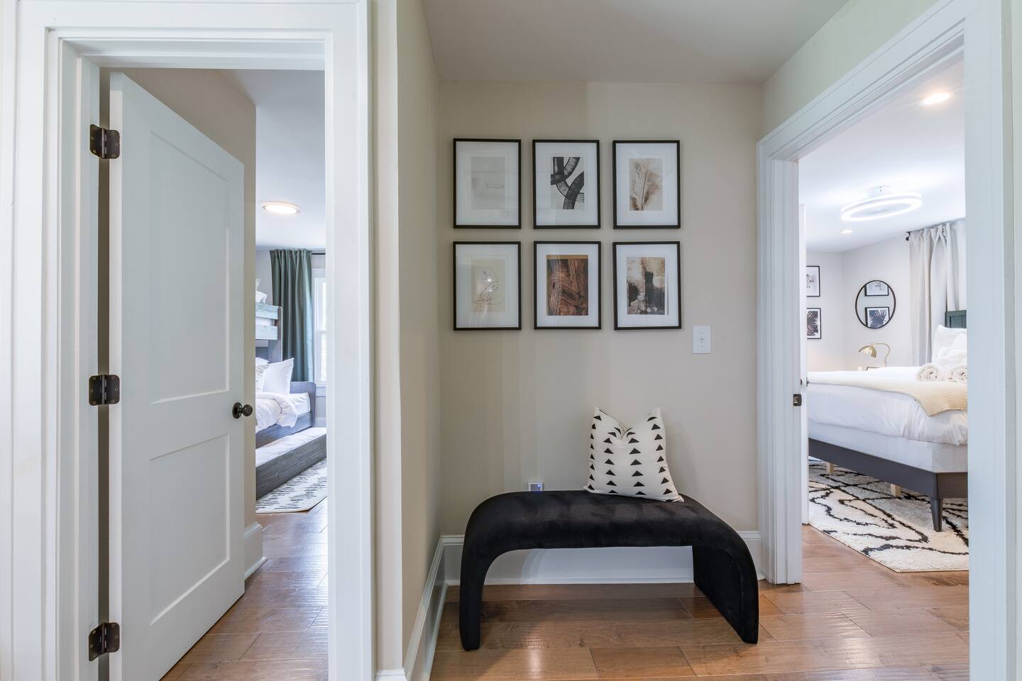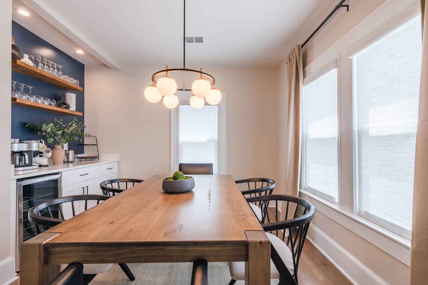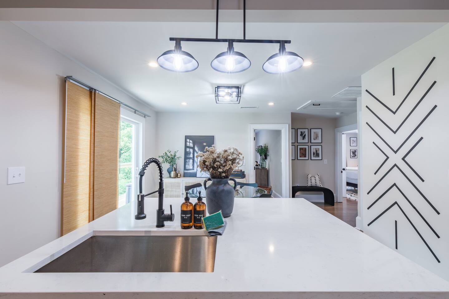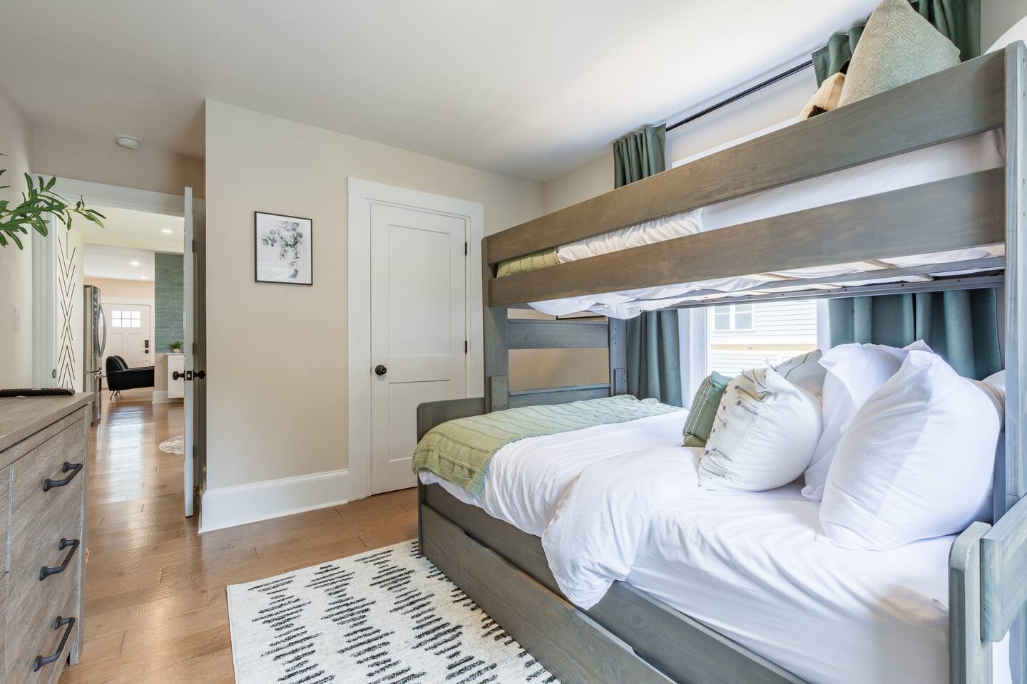 As you step into this beautifully designed 1,900 sq ft main floor unit, you're greeted by an open-concept layout blending modern style and comfort in the heart of historic Kirkwood. Just minutes from Downtown ATL, trendy restaurants, and shops, it’s the perfect retreat for families and groups. This is a two-unit home. Guests in the basement unit will not access your space. If you prefer exclusive access to the entire property (main floor + basement), book here: airbnb.com/h/bluehavenatl. Units are fully separated with locked interior stairs and private exterior entrances. • Fully Equipped Kitchen & Dining Cook meals with ease using modern appliances and plenty of space to gather around the island or dining table. • Inviting Living Room Unwind on plush seating, stream your favorite shows on a 65” Smart TV, or enjoy a cozy evening by the fireplace. • 3 Comfortable Bedrooms Master: King bed, desk, ensuite bath Bedroom 2: Bunk (twin over full) + trundle Bedroom 3: Queen bed Each features Smart TVs, premium linens, and ample storage. • 2 Modern Bathrooms Stocked with fresh towels, hair dryers, and essentials. • Outdoor Oasis Relax on the private deck with lounge seating, BBQ, and a peaceful ambiance. (Basement guests do not have deck access.) We look forward to hosting you and helping you create lasting Atlanta memories!