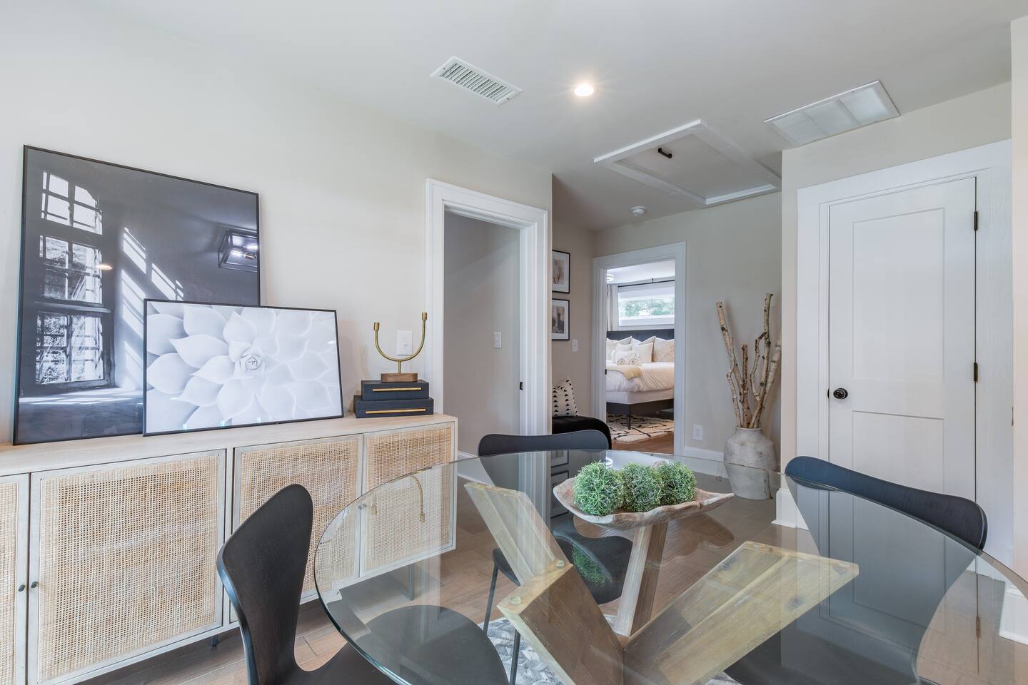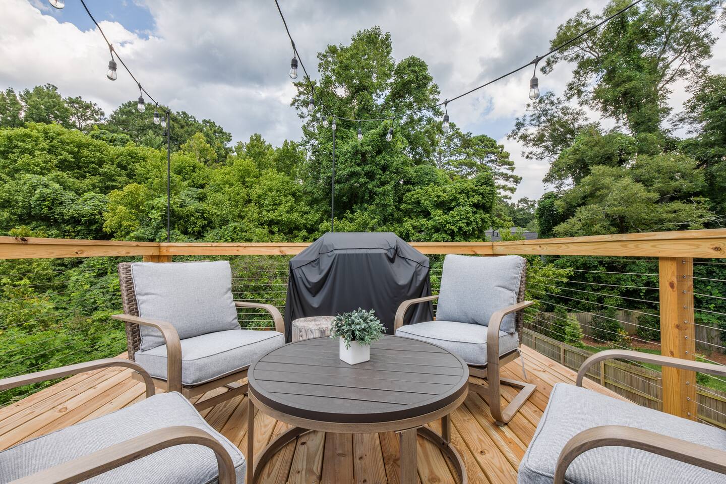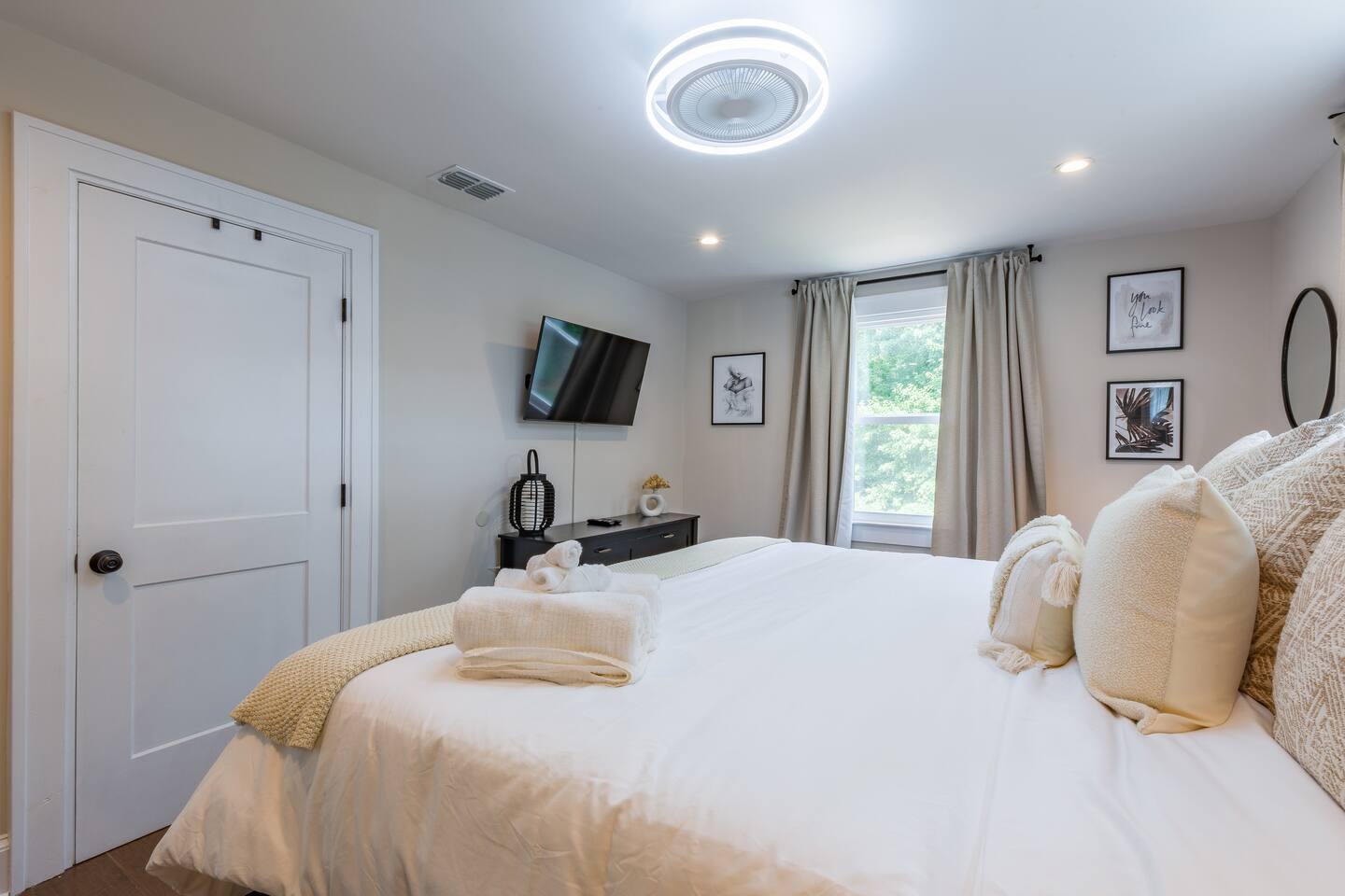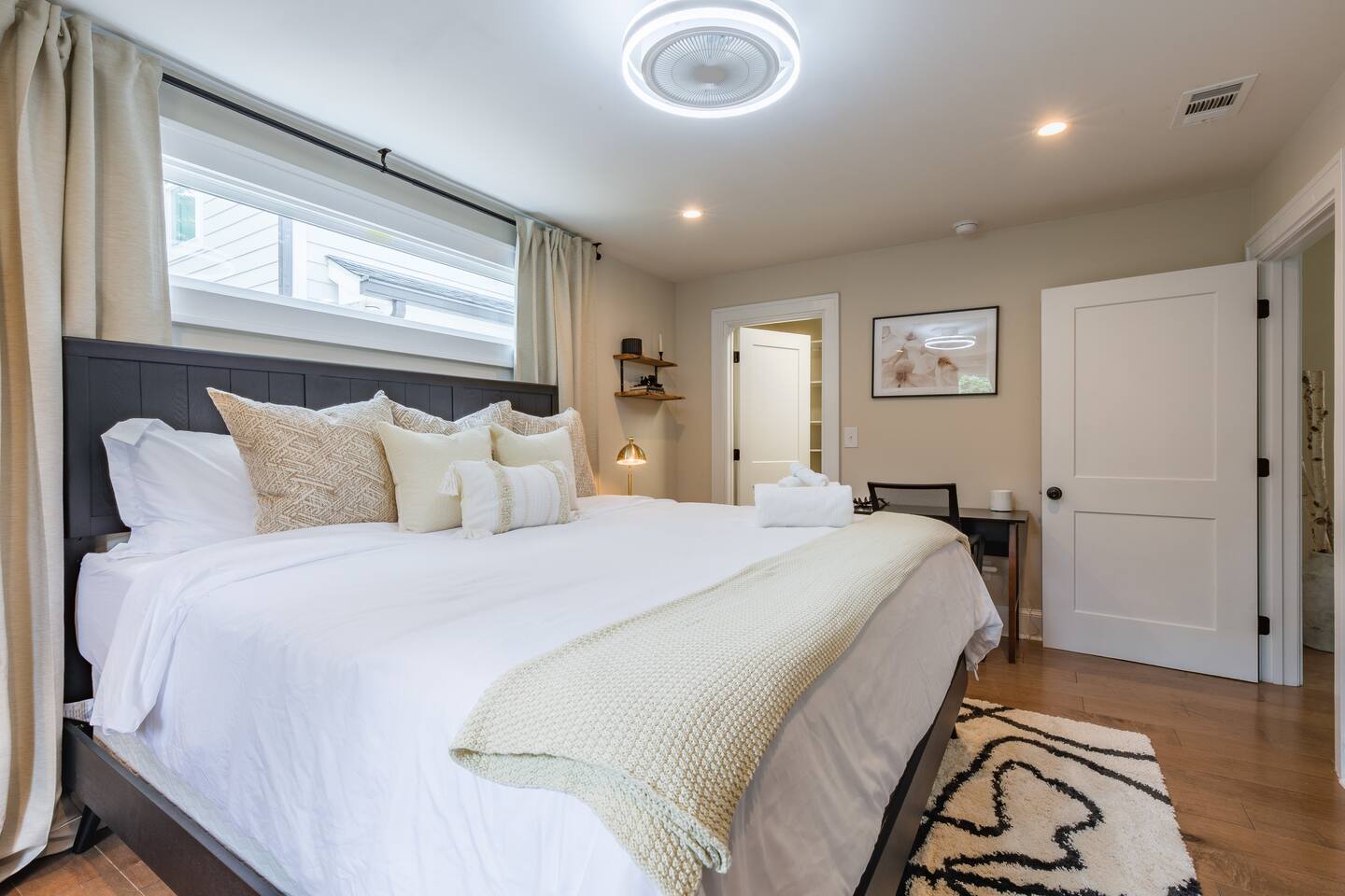 As you step into this beautifully designed 1,900 sq ft main floor unit, you're greeted by an open-concept layout blending modern style and comfort in the heart of historic Kirkwood. Just minutes from Downtown ATL, trendy restaurants, and shops, it’s the perfect retreat for families and groups. This is a two-unit home. Guests in the basement unit will not access your space. If you prefer exclusive access to the entire property (main floor + basement), book here: airbnb.com/h/bluehavenatl. Units are fully separated with locked interior stairs and private exterior entrances. • Fully Equipped Kitchen & Dining Cook meals with ease using modern appliances and plenty of space to gather around the island or dining table. • Inviting Living Room Unwind on plush seating, stream your favorite shows on a 65” Smart TV, or enjoy a cozy evening by the fireplace. • 3 Comfortable Bedrooms Master: King bed, desk, ensuite bath Bedroom 2: Bunk (twin over full) + trundle Bedroom 3: Queen bed Each features Smart TVs, premium linens, and ample storage. • 2 Modern Bathrooms Stocked with fresh towels, hair dryers, and essentials. • Outdoor Oasis Relax on the private deck with lounge seating, BBQ, and a peaceful ambiance. (Basement guests do not have deck access.) We look forward to hosting you and helping you create lasting Atlanta memories!