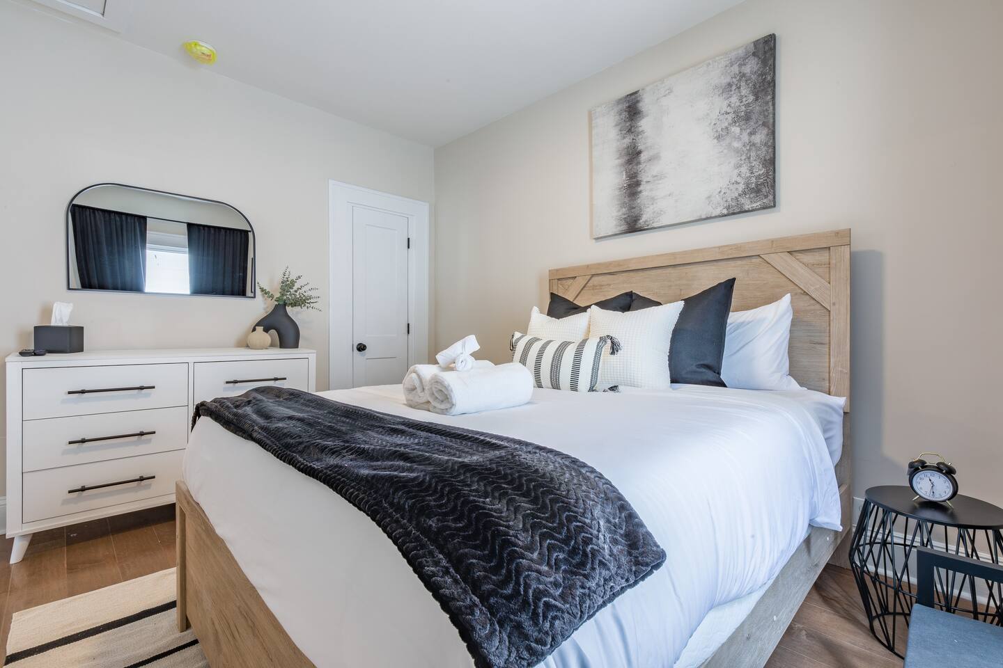 The main floor unit is exclusively yours for the duration of your stay—relax, unwind, and make yourself at home. Please be mindful of any guests staying in the basement unit by keeping noise to a minimum, especially in the evenings. Rest assured, basement guests have no access to the main floor. Both units are separated by locked stairwell doors and have private entrances for your peace of mind. • Additional amenities include: Self check-in for easy arrival High-speed Wi-Fi Central heating & air conditioning (separate climate control for basement) Iron & ironing board Washer & dryer Ring doorbell & security cameras (covering entrances only) Free parking on premises Hotel-style safe for valuables Family-friendly gear: baby gate, Pack & Play, high chair Portable fans & humidifier for extra comfort